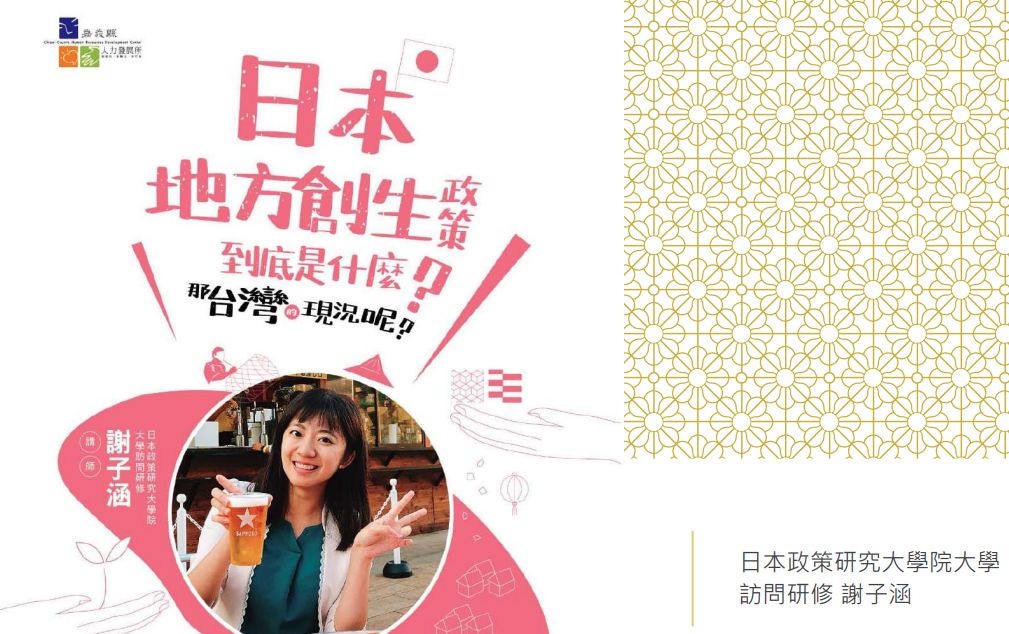 這是嘉義縣人力發展所所主辦的演說,講題:日本地方創生政策到底是什麼?那台灣的現況呢?分…